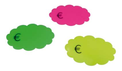 In PVC rescrivibili con pennarelli non indelebili che ne permettano la cancellazione. Confezione n° 10 pezzi. Colori rosa, verde e giallo.